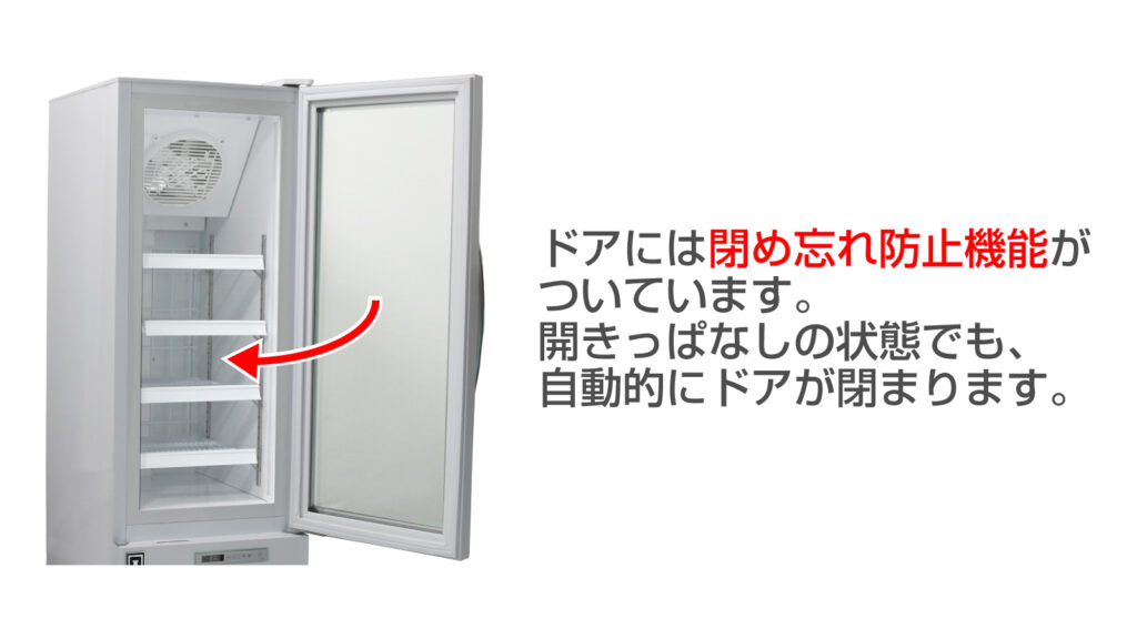 ドアには閉め忘れ防止機能がついており、開きっぱなしの状態でも自動的にドアが閉まります。