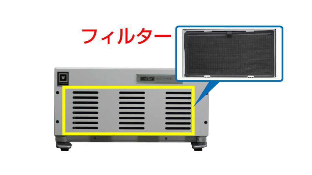 フィルターは前面に設置されているので、製品を動かさずにお手入れができます。