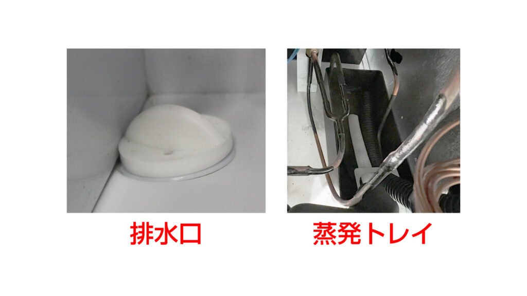 庫内の水は底部の排水口から簡単に排水できます。排水した水は蒸発トレイにて強制的に蒸発するので、排水工事が必要ありません。