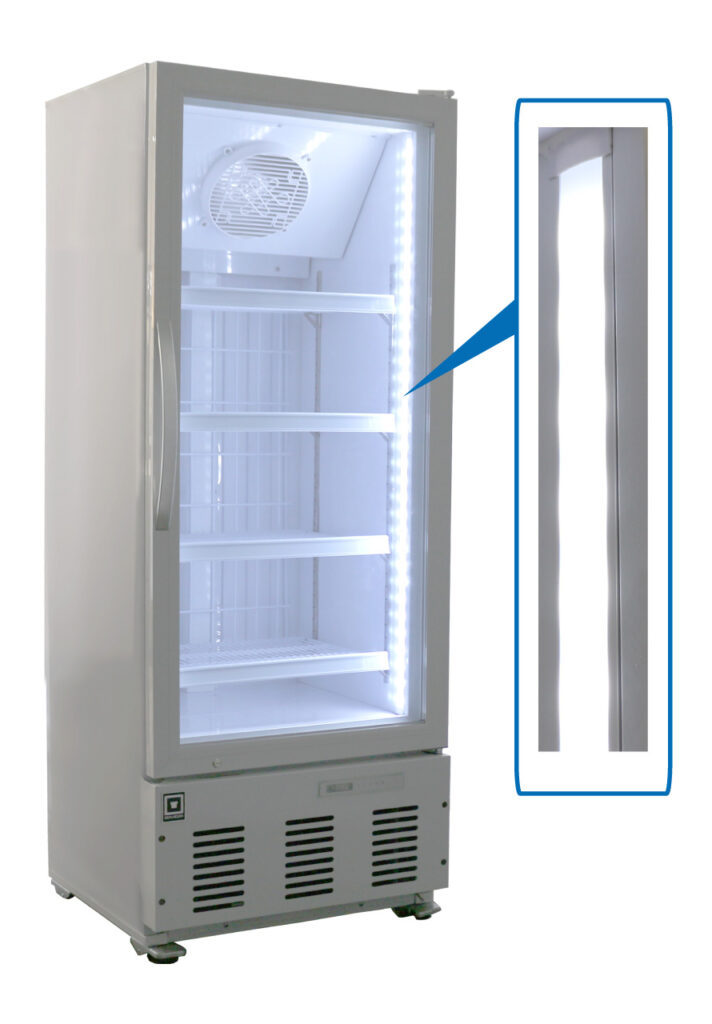 リーチイン冷凍ショーケース内に設置された白色LED照明は、庫内の商品を鮮やかにそして美しく照らし出し、その請求力を高めます。